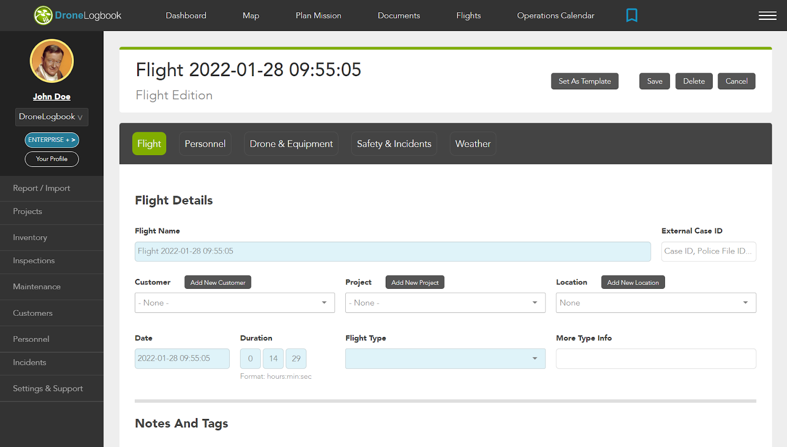 Sie können die Flugdaten gegebenenfalls aktualisieren und speichern. Weitere Informationen finden Sie unter Wie man Flug hinzufügen/bearbeitet?