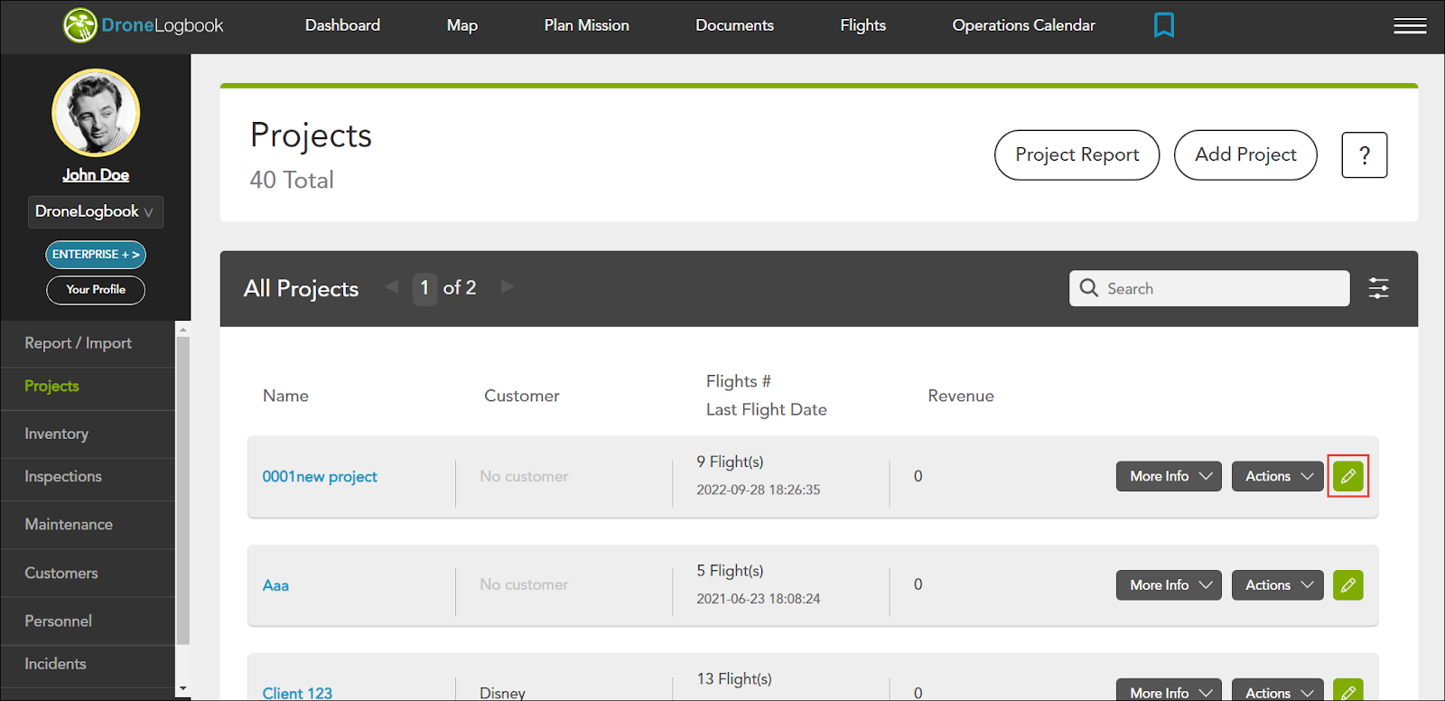 1. Navigate to Projects.