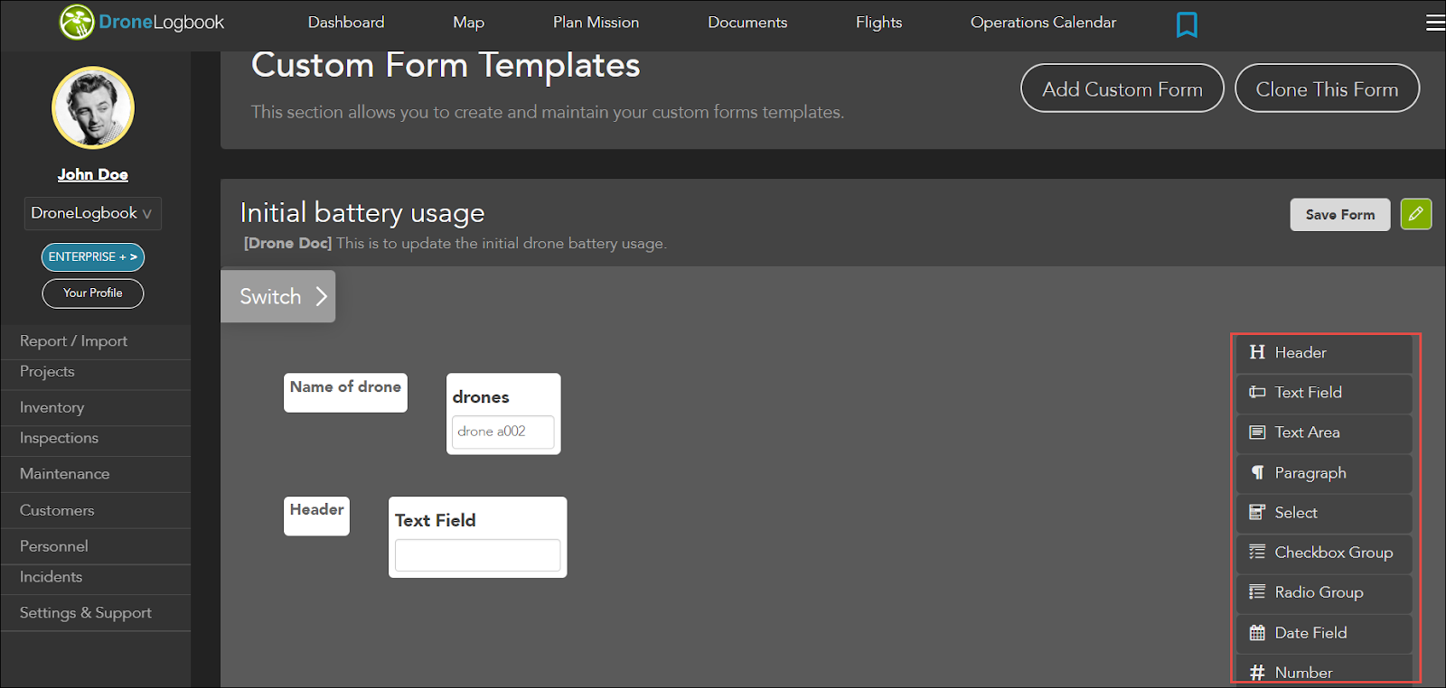 2. Click Add Custom Form.