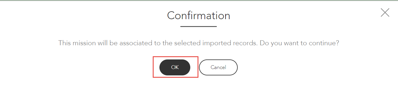 Note: If Complete Mission Without Appending Data is selected, the Confirmation dialog is displayed.