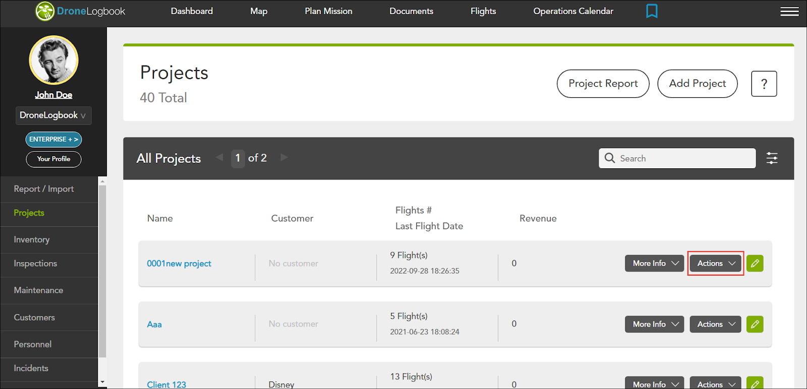 2. Sélectionnez Ajouter le formulaire dans la Actions liste déroulante dans la ligne du projet que vous souhaitez ajouter un document.