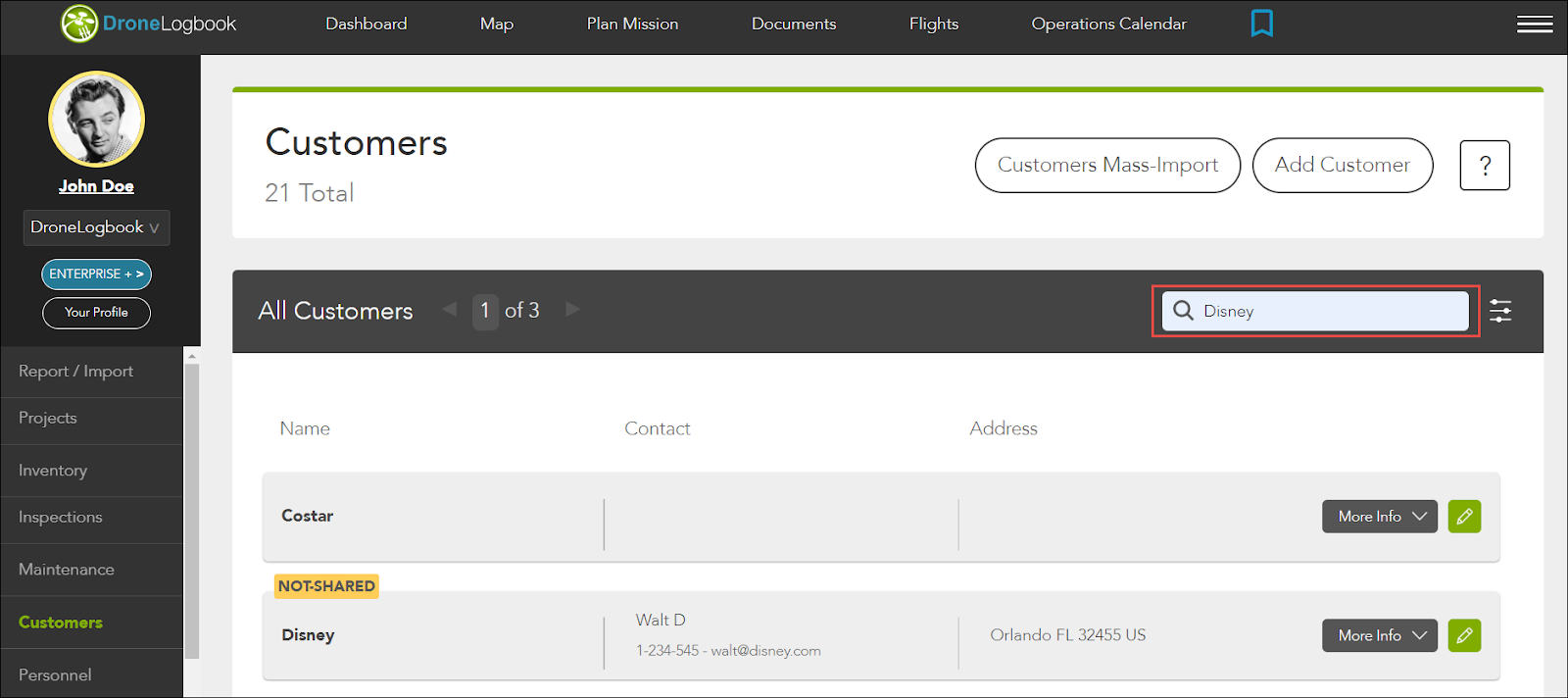 Puoi cercare i clienti sul tuo account DroneLogbook.