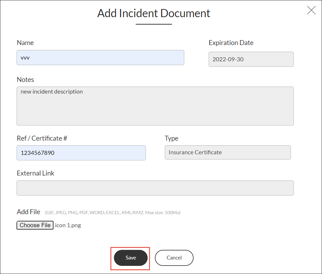 4. Insira os detalhes nos campos conforme necessário. Para mais informações faça o upload de um documento, consulte Como adicionar certificados, licenças, registros e outros documentos?